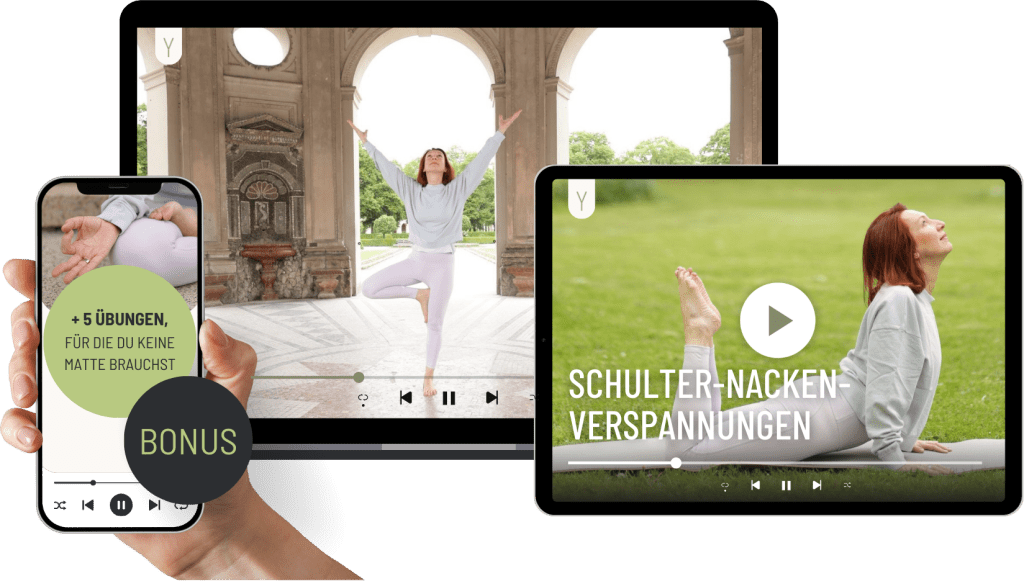 In dem Video erhältst du eine wirkungsvolle Yogaeinheit mit abgestimmten Übungen, die du leicht ausführen kannst und merkst, wie man mit so wenig Aufwand so viel Beweglichkeit in den Schulter-Nacken-Bereich bringen kann.